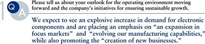 We are also moving forward with the “smart.E” project to further evolve our manufacturing capabilities so that we can successfully respond to greatly increased demand for electronic components and further reduce costs.