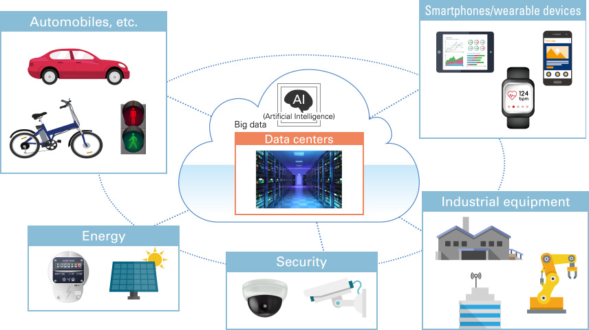 The IoT era entails electronics devices that were previously operating in isolation now being connected to a network and exchanging huge amounts of data. The Japan Electronics and Information Technology Industries Association (JEITA) estimates the ratio of equipment compatible with IoT rising from about 66% in 2016 to 86% in 2030. The JEITA also estimates that, as a result of the ongoing shift in standalone products to IoT products the market for IoT equipment would expand by an annual average of 5.6% through 2030. Moreover, demand for electronic components appears likely to expand at a pace exceeding that of IoT equipment, thanks in part to the synergistic effects stemming from an expansion in product demand and an increase in the number of components used in each product.