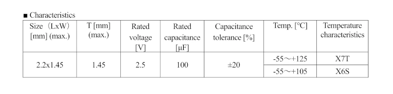 To satisfy this need, TAIYO YUDEN has improved its external electrode formation technology and commercialized 2012 size embeddable MLCC with a capacitance of 100 μF.