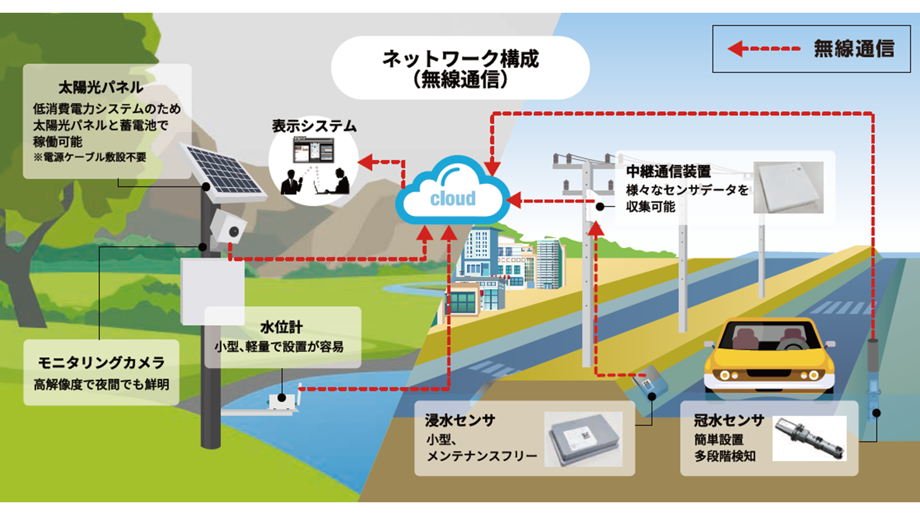 冠水状況を監視する自立型センサー